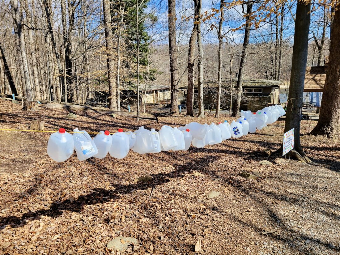 Forty gallon jugs demonstrate how much sap has to be collected to make one gallon of syrup, during the Maple Syrup Festival on Saturday. Tabitha Johnston