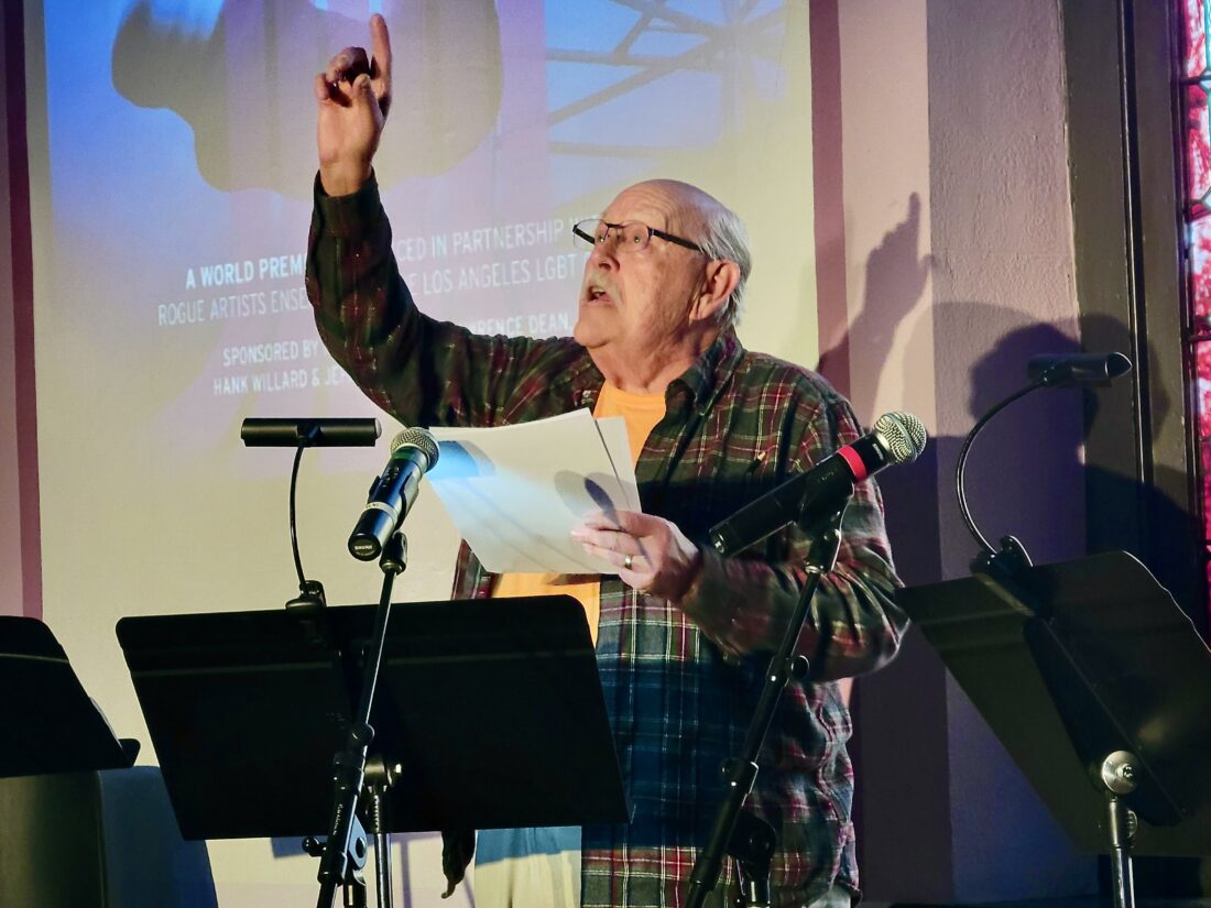 CATF board member and retired opera singer David Rampy performs a scene from "Happy Fall: A Queer Stunt Spectacular," during the Shepherdstown Sneak Peek in The Church on March 26. Tabitha Johnston