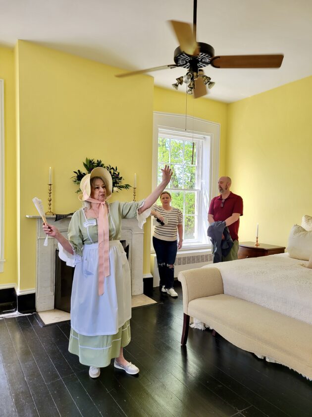 Charles Town resident Johanna Myers gives a tour of a bedroom in Beallair Manor House on Saturday afternoon. Photo by Tabitha Johnston