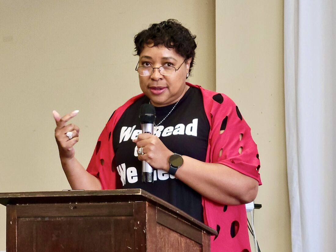 Jefferson County Magistrate Arthena Roper speaks at Black Policy Day Eastern Panhandle, after accepting a Heart of the Community Award in Corner Connections on Aug. 15. Photo by Tabitha Johnston