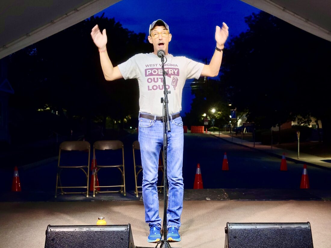 - Vandalia award winning author and storyteller Bil Lepp entertains the crowd on the Appalachian Heritage Festival’s Outdoor Stage on Saturday. Photo by Tabitha Johnston