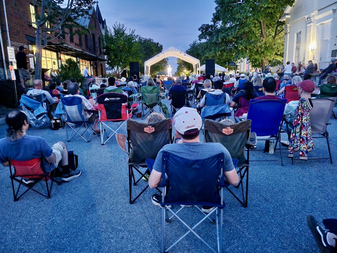 A crowd fills the street in front of Town Hall, to listen to performances on the Appalachian Heritage Festival’s Outdoor Stage on Saturday night. Photo by Tabitha Johnston