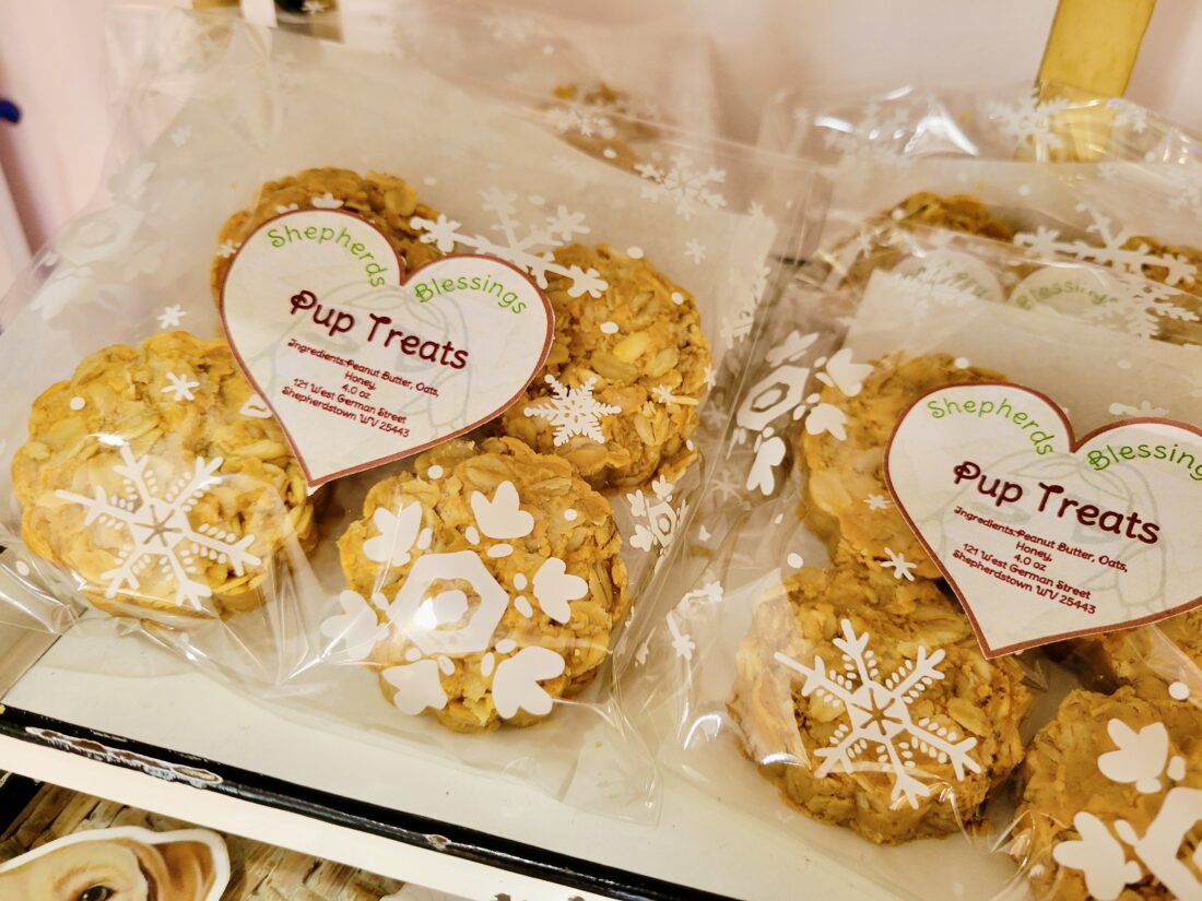 Pup Treats, made with organic ingredients, wait on a shelf in Shepherds Blessings, ready for a lucky dog to enjoy. Photo by Tabitha Johnston
