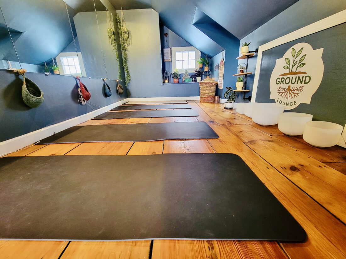 The yoga room has grounding mats available for rental in the Ground Lounge. Photo by Tabitha Johnston