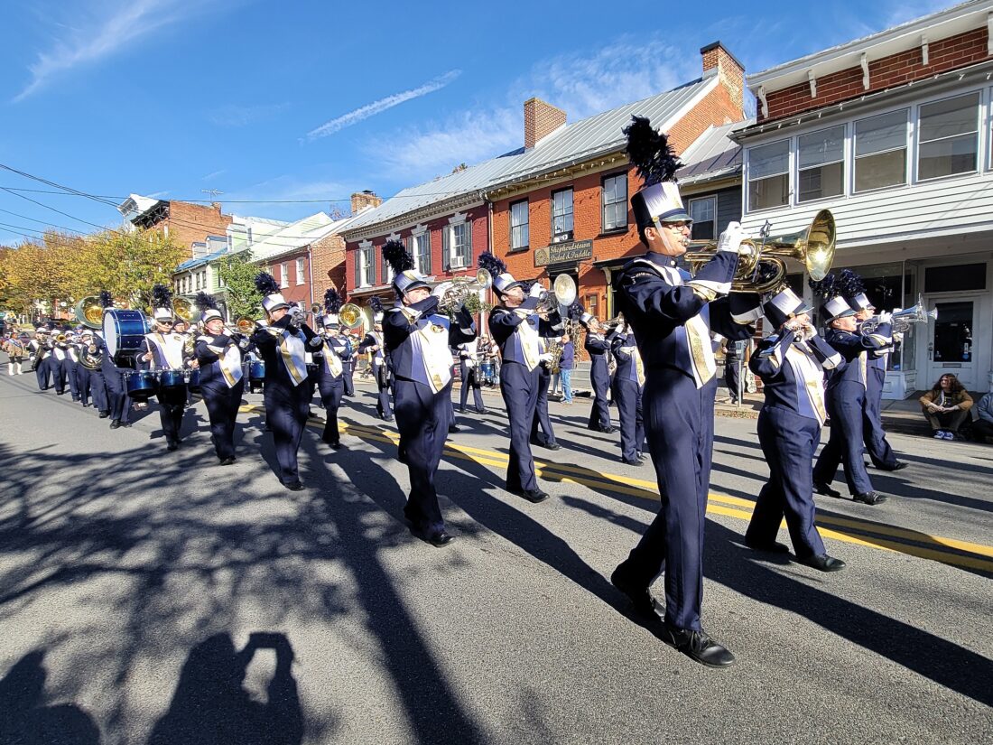 - The Ram Band fills German Street with music, during the Shepherd University Homecoming Parade on Saturday. Photo by Tabitha Johnston