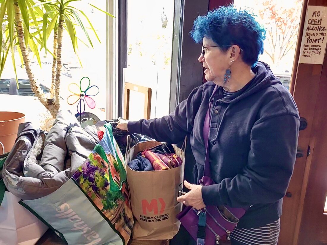 “The weather this week was really cold, and so, when I saw the advertisement that this was taking place, I thought it would be a nice thing to participate in. With it being a local initiative, I knew the donations would be used to directly benefit local people in need,” Loonsk, who is also a member of Indivisible, said. “People need help. I’m fortunate that I don’t need that kind of help at the moment. It makes me all the more glad to be able to give back in this way.”