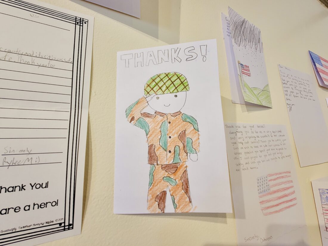 Also featured in the show were letters and cards, which had been creatively crafted for veterans to read by local elementary school students.