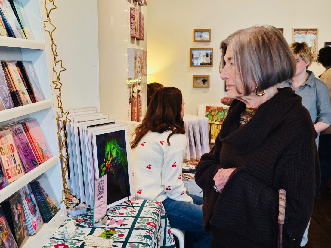 An art lover picks out a handmade card to purchase at the Art Market, which was held in Evolve over the weekend. Photo by Tabitha Johnston