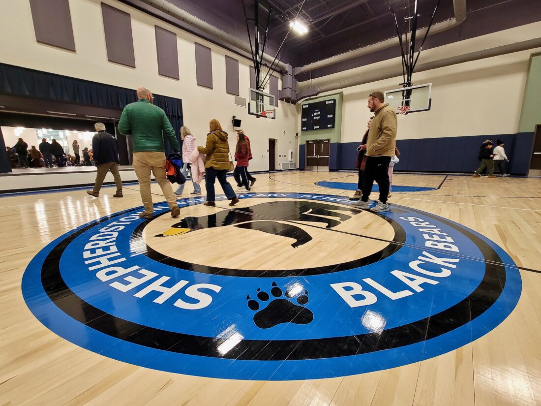 - Community members take a look at Shepherdstown Elementary School’s new mascot, the Black Bears, at the sneak peek on Dec. 9. Photo by Tabitha Johnston