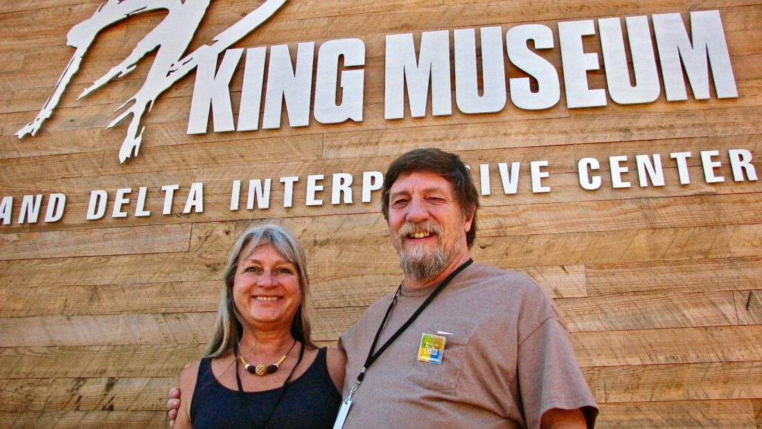 Carol and Bradley Sanders stop for a photo together in one of the many museums they designed an exhibit for, during their time running Sanders Museum Services. Courtesy photo